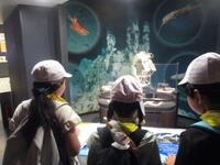 約1時間半バスに乗り、千葉市科学館に到着。科学館の方のお話しを聞いてから見学開始です。