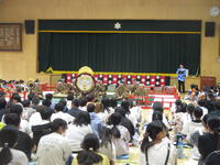 今日は、2回目の全校での運動会練習でした。朝からの雨で、外では行うことができず体育館での応援合戦の練習となりました。しかし子供たちはそんなことには負けません。応援団が中心となって、一生懸命応援練習を行っていました。