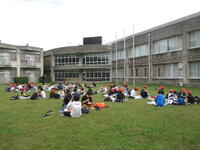 全校の集合写真は、写真屋さんが屋上から撮影しました。
