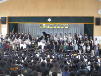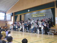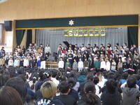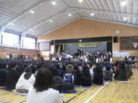 まずは全体合唱。全校で「夢の世界を」を歌いました。