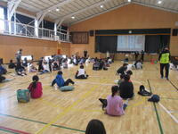 その範囲は、体育館・教室・校庭と幅広いです。子供たちは、興味津々で活動を見学していました。