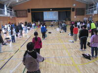 昼休みは「スマイルタイム」です。1年生と6年生は体育館で、2年生と4年生は校庭で、3年生と5年生は3年生の教室で、それぞれ行いました。今回は、下の学年が企画しました。