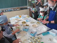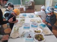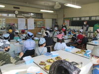 前半は、家庭科室で学校で収穫された&学校運営協議会委員の石戸さんの畑で収穫されたサツマイモを使って、スイートポテトを作りました。