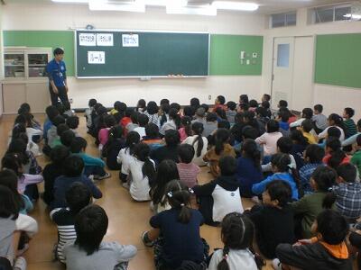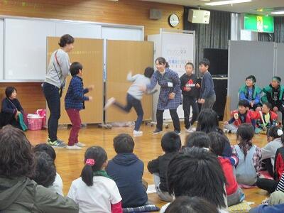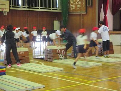 運動指導の専門スタッフが3名来校し、3年生の跳び箱授業を全学級で実施しました。テンポ良く運動量も充分な活動です。本校の教員も、指導のコツやポイントを学びます。