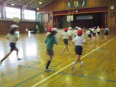 昼から雨になり、5時間目の体育のクラスは体育館でランニングです。