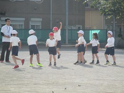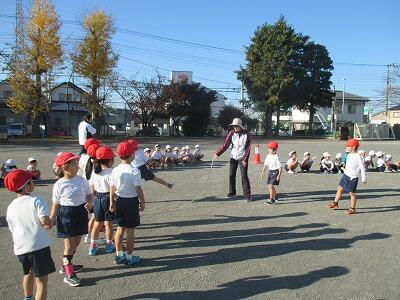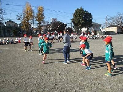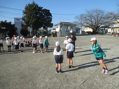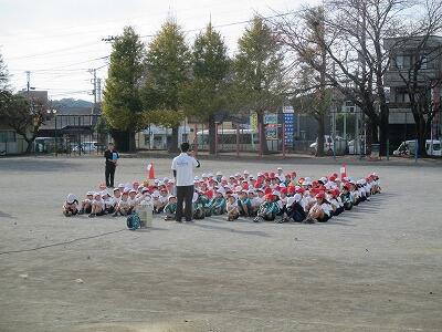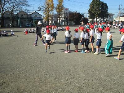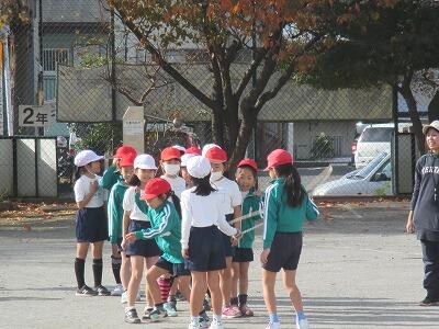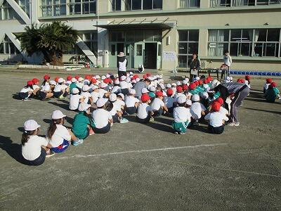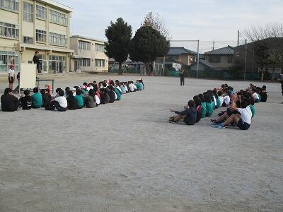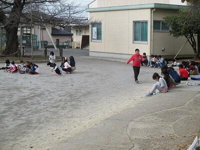 今日はこの冬一番の寒さですが、4年生が校庭で体育です。