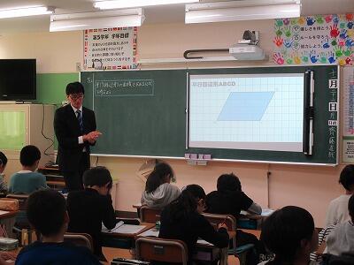 5年生の算数の授業で、授業の進め方を研修しに来ました。