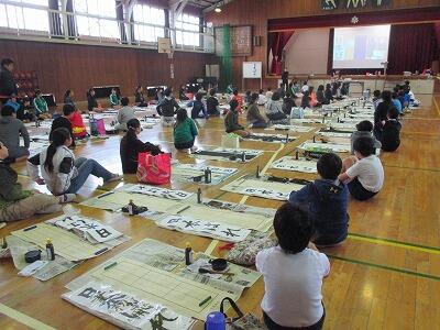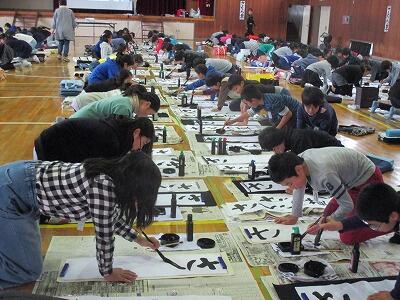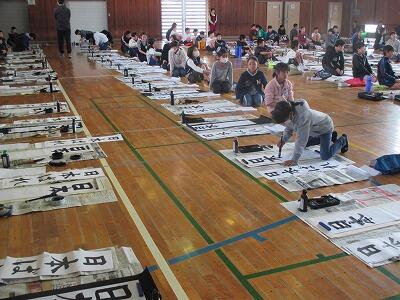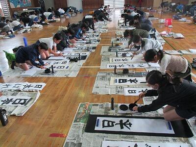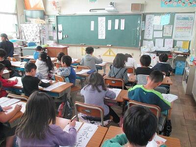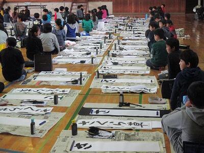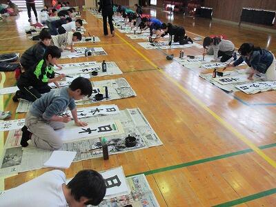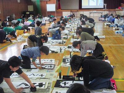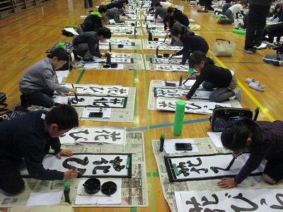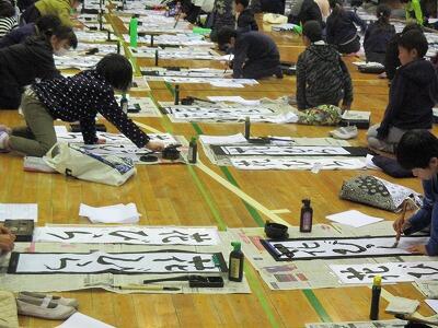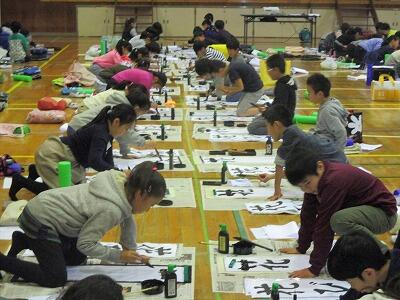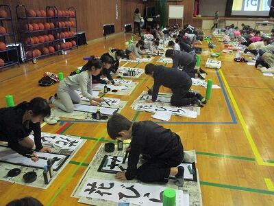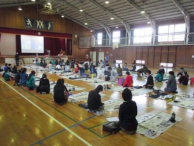 講師の先生に来校していただき、5年生の書初め教室がありました。