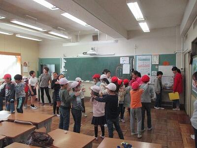 導入は音楽に合わせて身体を動かし、合唱もします。