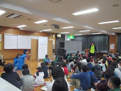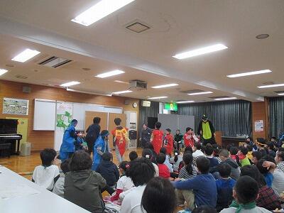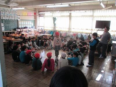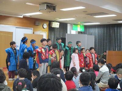 4年生です。6年生の学校生活を寸劇で振り返ります。