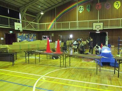 6年生を送る会の準備が進められています。体育館の装飾もできています。