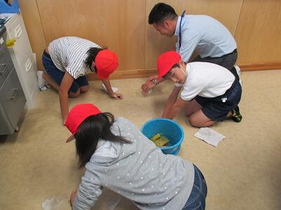 そうじのポイントを確認しています。
