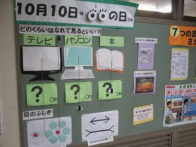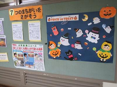 保健室の廊下は、時期に応じた掲示物が工夫されています。