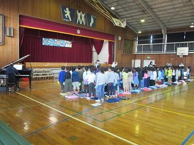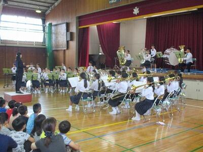 全校で演奏を聴き、発表会で良い演奏ができるように励ます会を行いました。