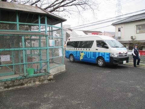 学校に帰ってくるときに移動交番が来てくださいました。