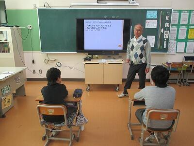 市教委の児童生徒課の先生に来ていただきました。集中して真剣に取り組んでいました。