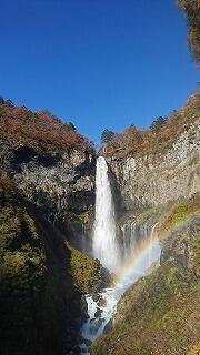 華厳の滝を見学しました。天候に恵まれ,きれいな紅葉とともにはっきりと虹もかかって見えました。この後,江戸ワンダーランドに向かいます。