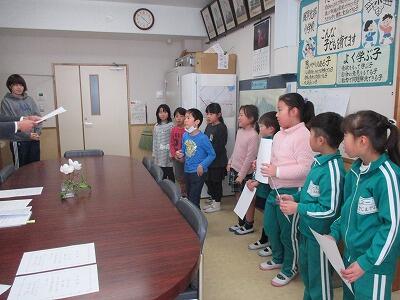 風っ子日記 平成30年度 全ての記事 全ての記事 カテゴリ 今日の出来事 連絡事項 報告事項 アーカイブ 2026年2月 (0) 2026年1月 (0) 2025年12月 (0) 2025年11月 (0) 2025年10月 (0) 2025年9月 (0) 2025年8月 (0) 2025年7月 (0) 2025年6月 (0) 2025年5月 (0) 2025年4月 (0) 2025年3月 (0) 2025年2月 (0) 2025年1月 (0) 2024年12月 (0) 2024年11月 (0) 2024年10月 (0) 2024年9月 (0) 2024年8月 (0) 2024年7月 (0) 2024年6月 (0) 2024年5月 (0) 2024年4月 (0) 2024年3月 (0) 2024年2月 (0) 2024年1月 (0) 2023年12月 (0) 2023年11月 (0) 2023年10月 (0) 2023年9月 (0) 2023年8月 (0) 2023年7月 (0) 2023年6月 (0) 2023年5月 (0) 2023年4月 (0) 2023年3月 (0) 2023年2月 (0) 2023年1月 (0) 2022年12月 (0) 2022年11月 (0) 2022年10月 (0) 2022年9月 (0) 2022年8月 (0) 2022年7月 (0) 2022年6月 (0) 2022年5月 (0) 2022年4月 (0) 2022年3月 (0) 2022年2月 (0) 2022年1月 (0) 2021年12月 (0) 2021年11月 (0) 2021年10月 (0) 2021年9月 (0) 2021年8月 (0) 2021年7月 (0) 2021年6月 (0) 2021年5月 (0) 2021年4月 (0) 2021年3月 (0) 2021年2月 (0) 2021年1月 (0) 2020年12月 (0) 2020年11月 (0) 2020年10月 (0) 2020年9月 (0) 2020年8月 (0) 2020年7月 (0) 2020年6月 (0) 2020年5月 (0) 2020年4月 (0) 2020年3月 (0) 2020年2月 (0) 2020年1月 (0) 2019年12月 (0) 2019年11月 (0) 2019年10月 (0) 2019年9月 (0) 2019年8月 (0) 2019年7月 (0) 2019年6月 (0) 2019年5月 (0) 2019年4月 (0) 2019年3月 (14) 2019年2月 (22) 2019年1月 (28) 2018年12月 (19) 2018年11月 (31) 2018年10月 (41) 2018年9月 (35) 2018年8月 (0) 2018年7月 (24) 2018年6月 (22) 2018年5月 (20) 2018年4月 (18) 5件 1件 5件 10件 20件 50件 100件 校庭で体育 投稿日時 : 2019/01/18 風早北部小学校管理者 今日は北風が冷たく吹いています。でも、元気に校庭で体育の授業です。持久走や縄跳び、サッカーなどをしています。 校内書初め展 投稿日時 : 2019/01/17 風早北部小学校管理者 明日まで校内書初め展として、各学級の廊下に掲示しています。1・2年生はフェルトペンで書いています。3年生以上は毛筆です。保護者の皆様もぜひご覧ください。 校内授業研修 投稿日時 : 2019/01/16 風早北部小学校管理者 先週に続いて3年生の算数で授業研修を行いました。 3学期の学級委員の任命 投稿日時 : 2019/01/16 風早北部小学校管理者 各学年の学級委員の任命を校長室で行いました。 発育測定 投稿日時 : 2019/01/15 風早北部小学校管理者 学期始めなので、各学年とも発育測定を行っています。今日は1年生です。身長と体重を測定します。 « 789101112131415 »
