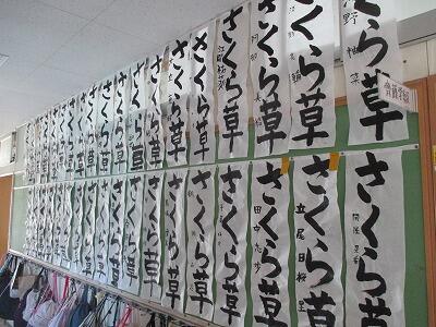 校内書初め展 投稿日時 : 2019/01/17 風早北部小学校管理者 明日まで校内書初め展として、各学級の廊下に掲示しています。1・2年生はフェルトペンで書いています。3年生以上は毛筆です。保護者の皆様もぜひご覧ください。