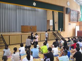 1年生と2年生の代表児童が、1学期を振り返って頑張ったことと、2学期に向けての抱負を語りました。2人とも立派に話をすることができました。