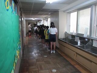 待っている児童の様子です。(3年)Drと検診を受けている児童はついたての奥です。