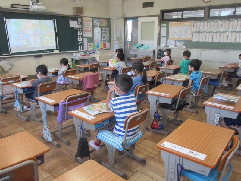 午後の授業が始まっています。1年生の5時間目の授業の様子