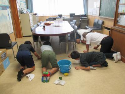 6年生の校長室掃除当番は、床の汚れ落としをやっています。驚くほどきれいになります。