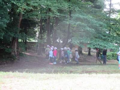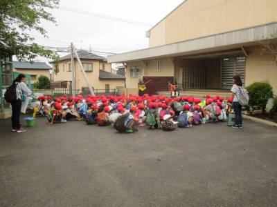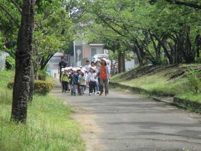 1年生は、徒歩で大津ケ丘中央公園の探検です。たくさんの保護者の方にもお手伝いいただきました。