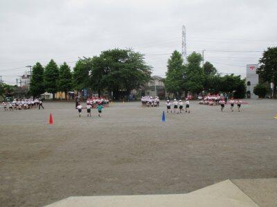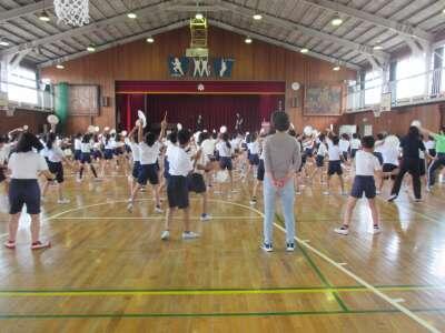 3年生が学年団体種目「風っ子タイフーン」の練習をしています。