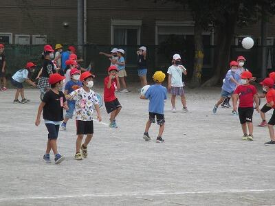 1・2年生には、各学級にふわふわボールが配付されました。ボールゾーンでドッジボールをして楽しんでいました。