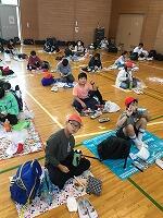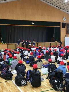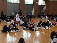 体育館で出発の会をした後,大津ケ丘中学校前へ移動しました。