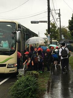 明け方の豪雨も弱まり,待ちに待った林間学校へ出発です。