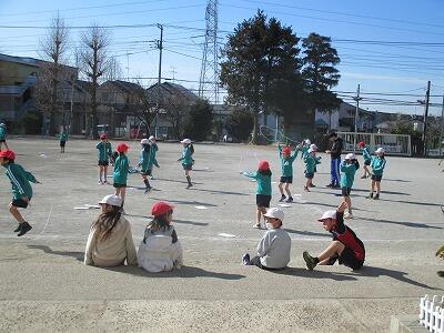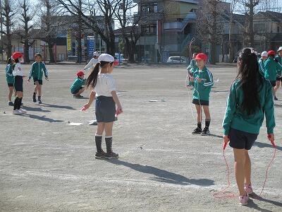 外の体育もポカポカ陽気の中で縄跳びです。
