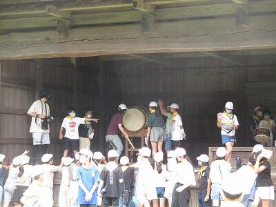 集合場所の「おまつり広場」の舞台には太鼓が設置されており、リズムよく太鼓の音を響かせていました。