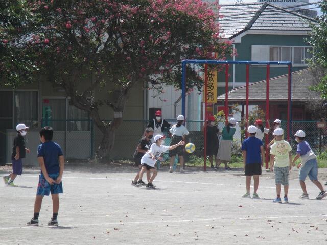 今日は台風の影響もあり、夏のような日差しが戻ってきました。子どもたちは、休み時間に元気に外で遊んでいます。今日は5・6年生が外遊びの日です。早速、いただいた一輪車とボールで遊んでいました。