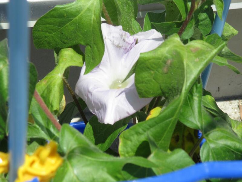 1年生のみんなが、種をまいて毎日水をやりながら育てたアサガオです。第1号の花が咲きました。