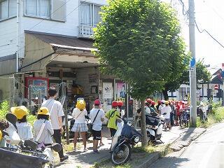 新聞屋さんの前で写真撮影。配達用のバイクの多さにびっくりしていました。消防署の前でも撮影です。