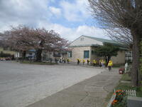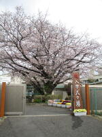 体育館前の桜は、入学式がちょうど満開で、1年生の入学を祝っているかのようでした。