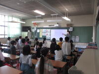 ある学級では、「1年生を迎える会」で全校合唱をする、「さんぽ」を元気に歌っていました。ある学級では、出欠確認に、しっかりと手を挙げ、大きな声で返事をしていました。