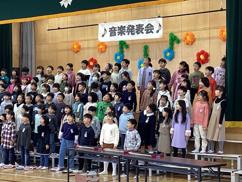1日目は児童がお互いに発表、鑑賞し合う形式で、2日目は保護者の方に参観していただく形式で音楽発表会を行うことができました。低学年のかわいらしい発表、中学年の元気のある発表、高学年の感動的な発表と、練習してきた成果を大いに発揮した素晴らしい発表会になりました。参観に来ていただきました保護者のみなさま、ありがとうございました。