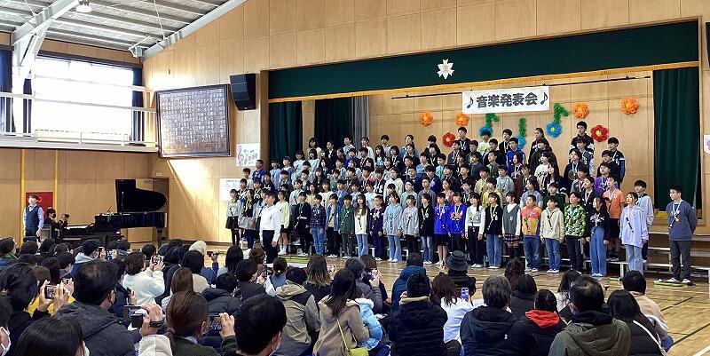 12月1日は児童がお互いに鑑賞し合い、2日は保護者のみなさまに参観いただき音楽発表会を実施しました。1日は、3年振りに児童がお互いの発表を対面で見合うことができました。それぞれの学年に応じた発表を鑑賞し、感動の時間を過ごすことができました。