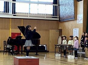 「子供のせかい」と「すてきな友だち」の合唱、演奏をしました。楽しみながら歌っている様子が伝わってきました。とてもきれいな二部合唱を披露しました。