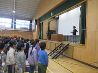 全校朝会の後は、児童会引継ぎ式です。大きなカギを、旧児童会から新児童会へ引き継ぎました。