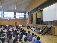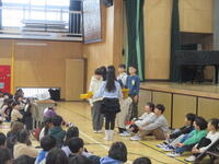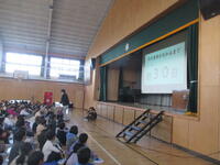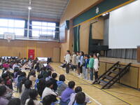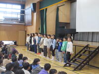 旧委員と新委員から一人ずつお話しがありました。旧役員からは、児童会で頑張ったことについて、新役員からはこれから頑張りたいことをそれぞれ語ってくれました。