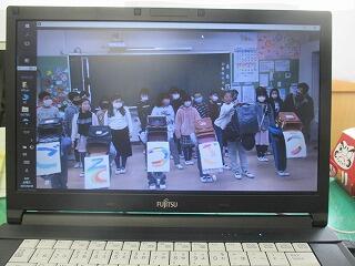 6年生は教室で動画を見ながら,とても喜んでいる様子で笑顔で拍手をしていました。