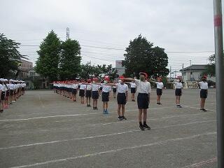 体育フェスティバルを行いました。朝は雨が降っていました。10分遅れでのスタートとなりました。
