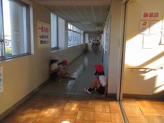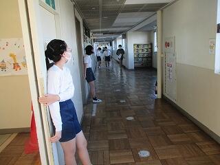 最初の活動 ー密告中ーお互いの背中のゼッケンの番号をたくさん密告した方がポイントをたくさんもらえます。背中が見えないように動いています、
