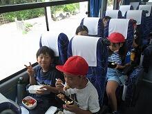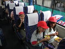 最初の休憩地の羽生PAには、朝の渋滞のため15分遅れで到着しました。みんなバスレクをして元気に過ごしています。これからバス内でおやつタイムです。