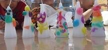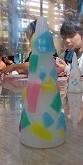 真っ白なキャンドルに、自分で選んだ5色のろうを選んでデザインしていきました。混ぜ合わせて、オリジナルの色を作ることもできました。