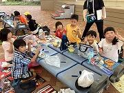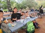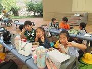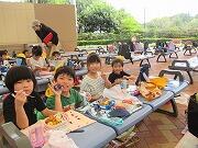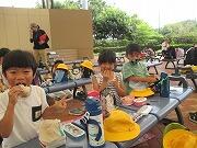 昼食の時間です。みんな美味しそうに食べています。朝早くから準備していただき、ありがとうございました。